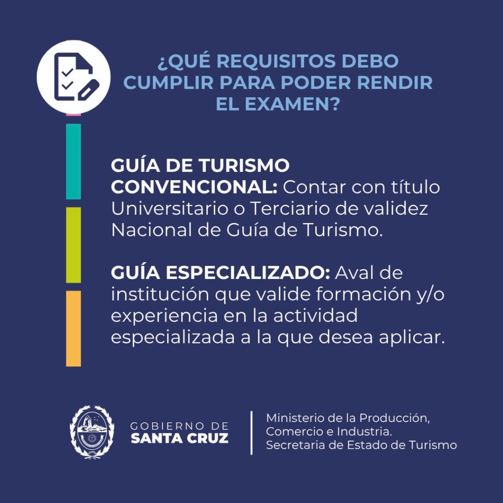 La Secretaría de Estado de Turismo, dependiente del Ministerio de la Producción, Comercio e Industria, informa que se encuentra habilitado el período de pre–inscripción para el examen habilitante de Guía de Turismo Provincial, una instancia clave para profesionalizar la actividad y garantizar estándares de calidad en toda Santa Cruz.