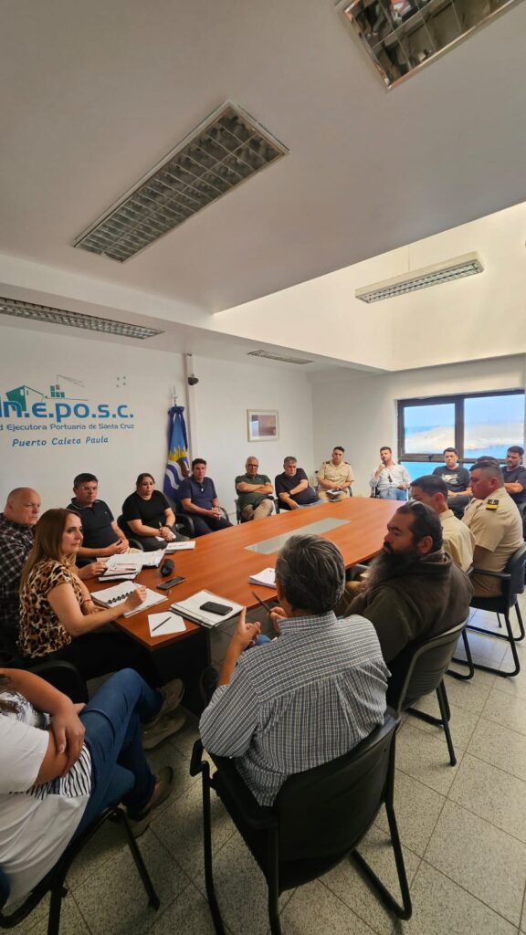 La primera instancia se desarrolló con empresarios del sector pesquero y firmas que utilizan el puerto Caleta Paula para la descarga de merluza. De este encuentro participaron además el coordinador general de la Unidad Ejecutora Portuaria de Santa Cruz (UN.E.PO.S.C.), Walter Uribe; la administradora del puerto Caleta Paula, Isabel Ampuero; representantes de Servicios Públicos Sociedad del Estado (SPSE); autoridades de Prefectura Naval Argentina y del Ministerio de Trabajo.