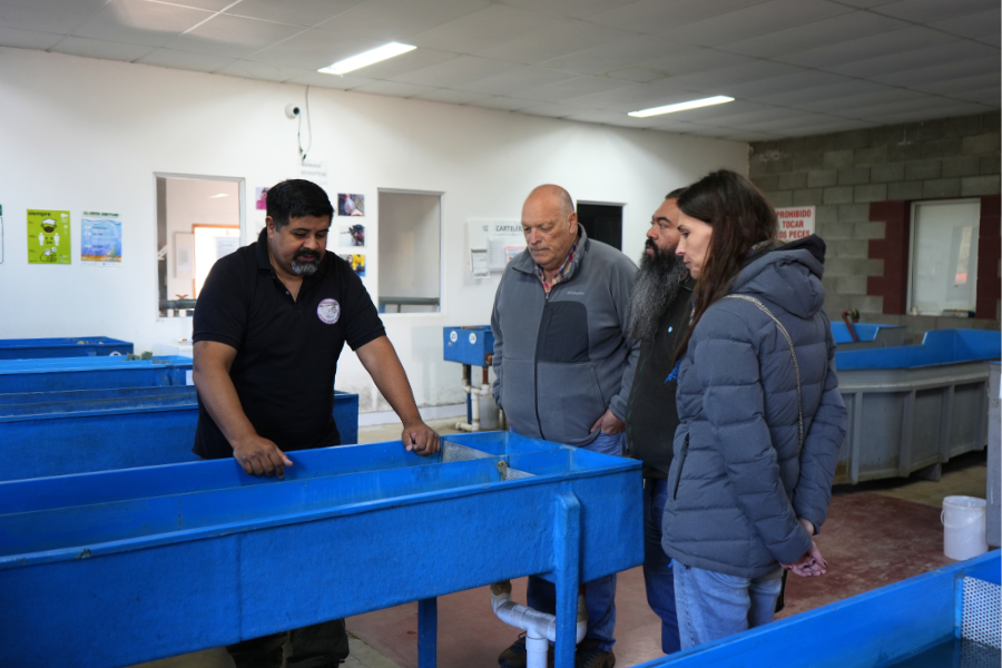 La comitiva estuvo encabezada por el secretario de Estado de Pesca y Acuicultura, Sergio Klimenko, acompañado por el subsecretario de Coordinación Pesquera, David Noriega, y la ingeniera en Recursos Naturales Renovables, Melisa Sazatornil, responsable del área de Investigación y Desarrollo. Fueron recibidos por el jefe del área, Daniel Armendáriz, junto al equipo de trabajo de la estación.