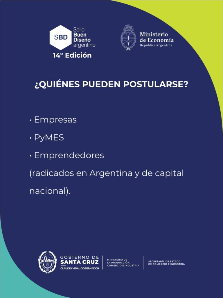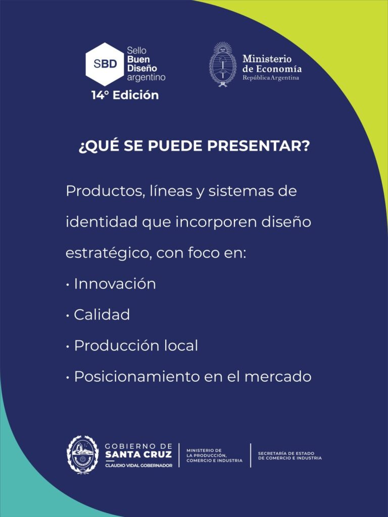 El Ministerio de la Producción, Comercio e Industria, a través de la Secretaría de Estado de Comercio e Industria, invita a empresas, PyMEs y emprendedores de la provincia a participar de la 14ª edición del Sello de Buen Diseño Argentino (SBD), una proyecto del Ministerio de Economía de la Nación que busca potenciar el desarrollo productivo a través del diseño y la innovación.